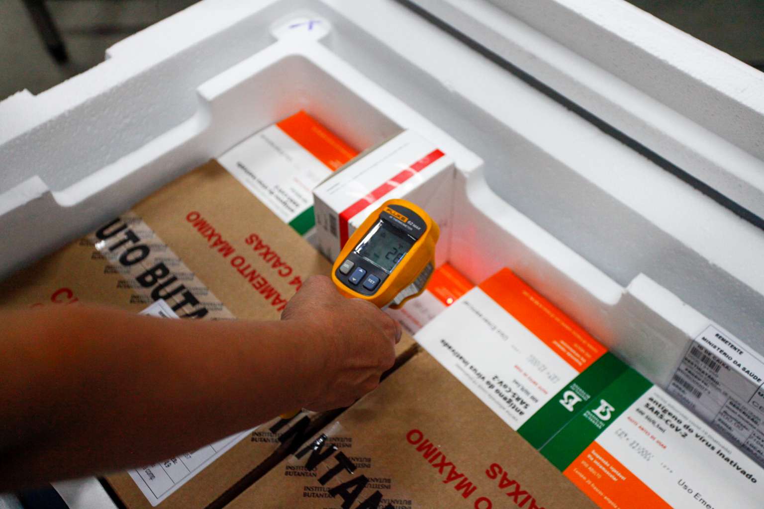 Novos lotes de vacinas contra a Covid-19 chegaram ao Ceará nesta quinta-feira (26). Durante a manhã, o Estado recebeu 194.600 doses de imunizantes da CoronaVac/Butantan. À noite, serão mais 127.530 da Pfizer/BioNTech. Essas duas remessas serão destinadas à vacinação da população tanto para primeira dose (D1) quanto para segunda dose (D2). Totalizando 322.130 doses, os imunobiológicos ficarão na Central de Armazenamento e Distribuição de Imunobiológicos (Ceadim), da Secretaria Estadual de Saúde (Sesa), de onde são encaminhadas aos municípios.