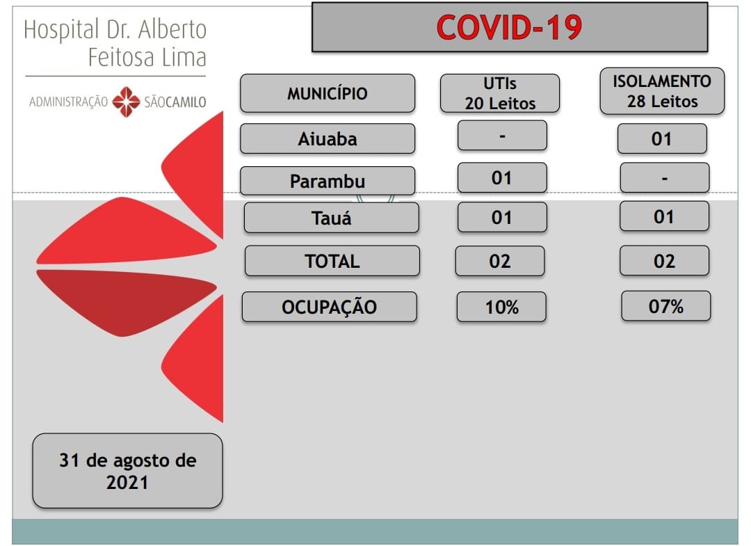 A taxa de ocupação de leitos de UTI-Covid no Hospital de Tauá caiu para 10% nesta terça-feira(31).