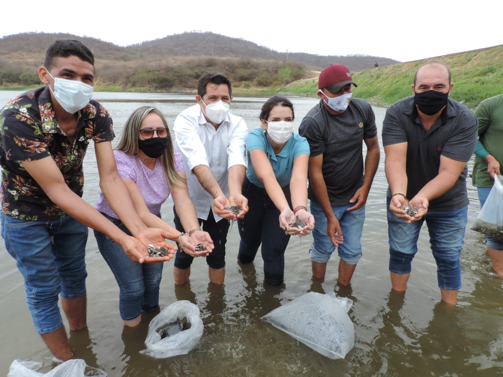 No início da manhã, Diniz e a prefeita, secretários e lideranças, estiveram na Barragem Colina, sede do município, onde foram distribuídos 60 mil alevinos do projeto de Peixamento dos Reservatórios Públicos do Ceará. Outros oito açudes na zona rural de Quiterianópolis também foram contemplados.