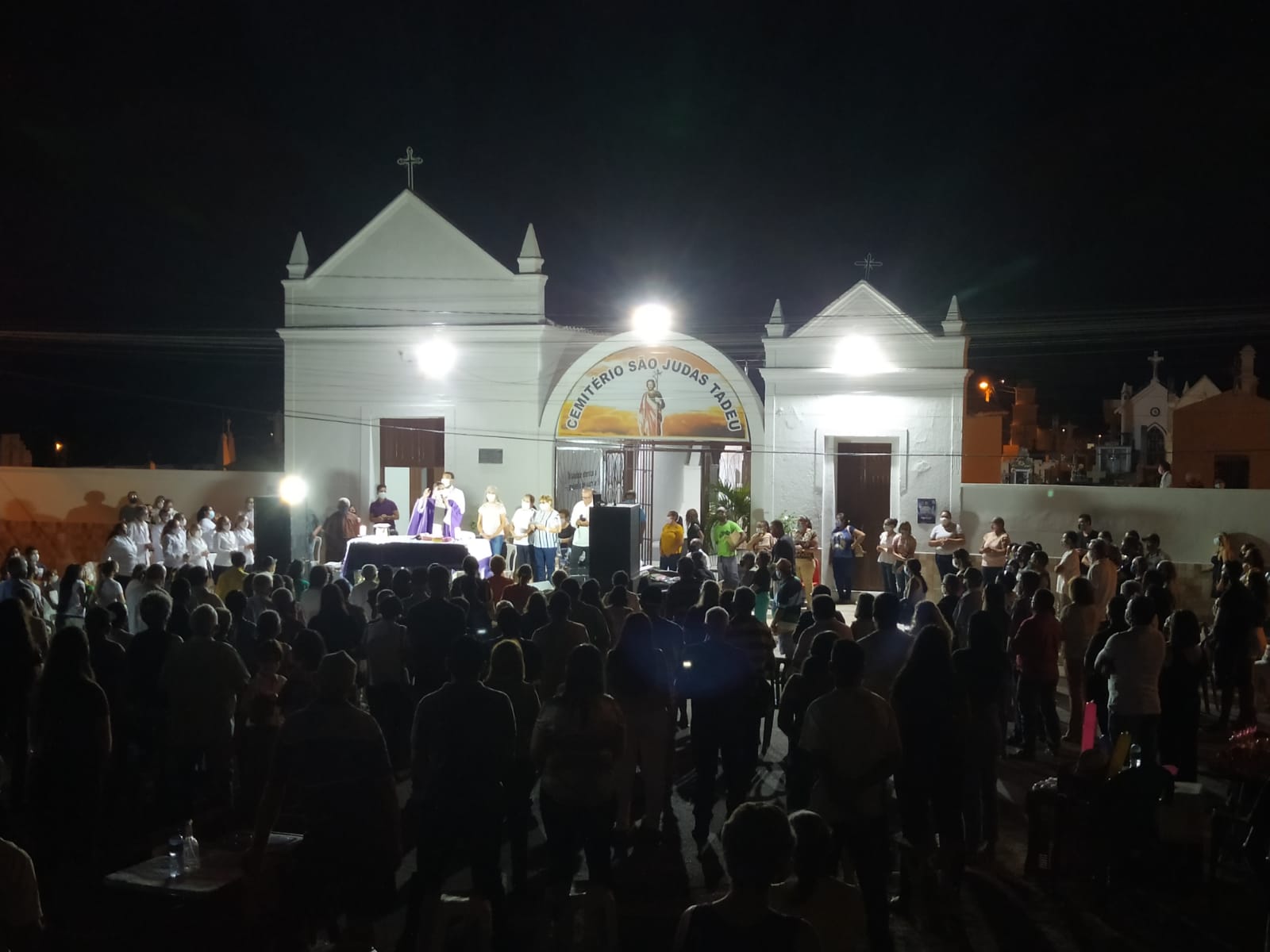 A programação alusiva ao Dia de Finados em Tauá, foi encerrada na noite de hoje(02), com a celebração de Missa em frente ao Cemitério São Judas Tadeu, com a participação de centenas de fiéis.