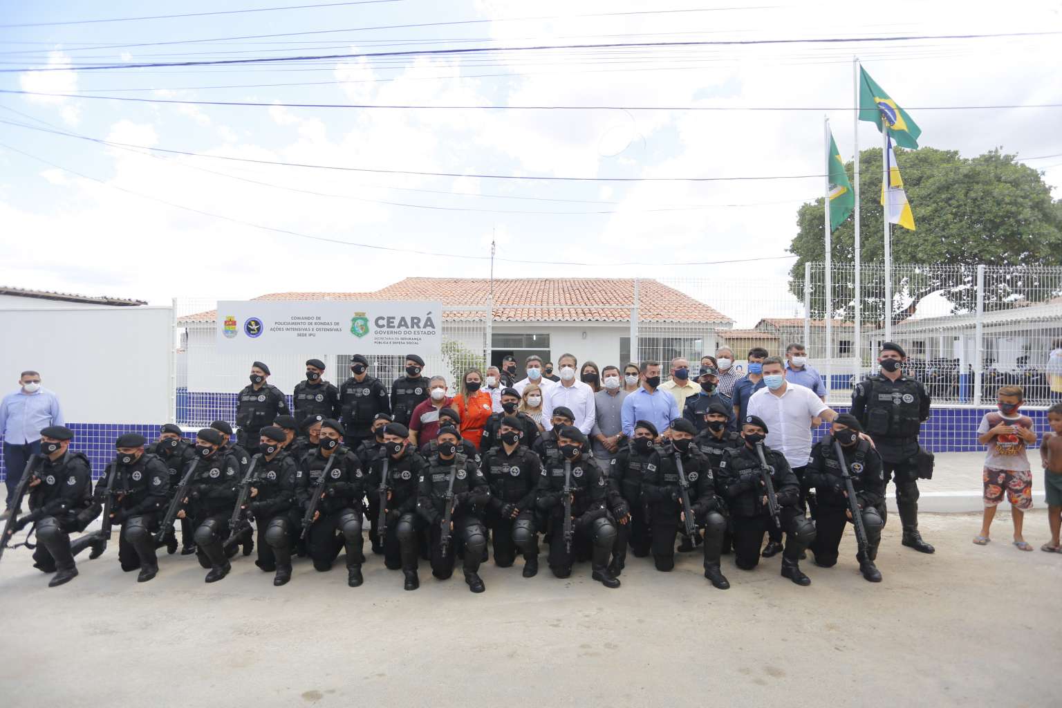 “Sei que o trabalho na segurança pública não é fácil no Brasil inteiro, mas não temos medido esforços, feito investimentos e concursos públicos para garantir segurança para a população do Ceará”, disse o chefe do Executivo estadual, que esteve acompanhado do secretário da Segurança Pública e Defesa Social, Sando Caron, do comandante-geral da Polícia Militar, coronel Márcio Oliveira, e do prefeito municipal Robério Rufino. Com a nova base, Ipu vai ter um reforço no policiamento de 30 agentes de segurança, que terão à sua disposição dez motocicletas de alta cilindrada, uma viatura e 15 câmeras de monitoramento espalhadas pelas principais ruas e avenidas da cidade.