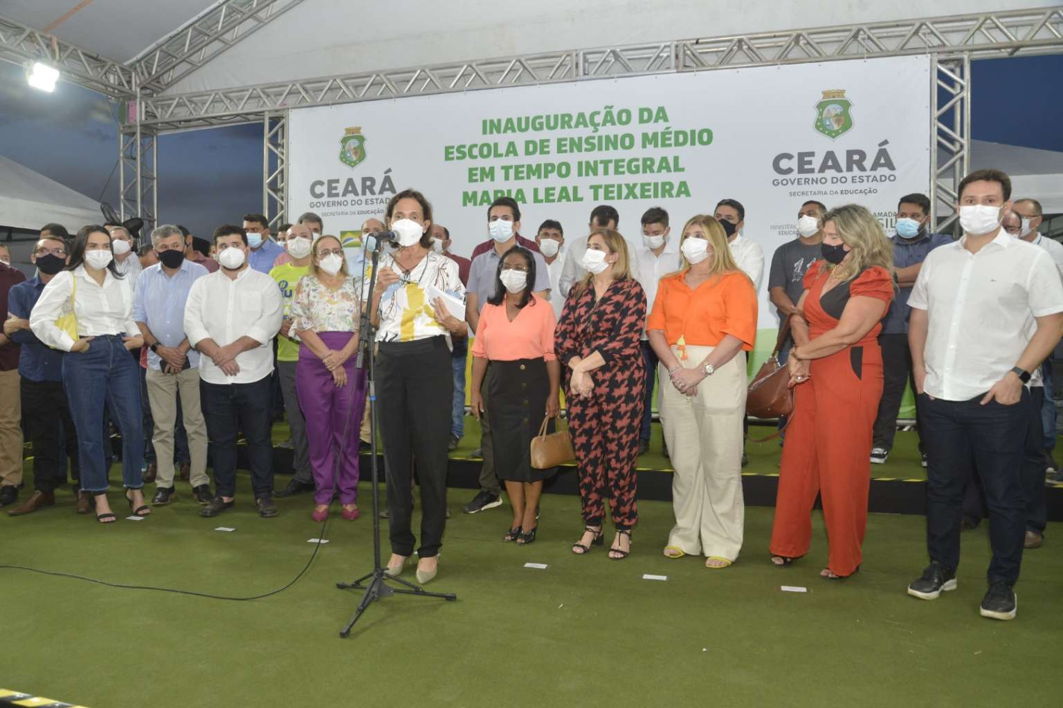 A vice-governadora falou da importância de uma escola padrão em um distrito, longe da sede do município, para que os jovens daquela região possuam a mesma oportunidade de qualquer outro estudante da rede pública cearense. “Esta é uma mentalidade, uma visão de educação, como também dos direitos dos jovens e crianças do Ceará, estejam eles onde estiverem. Ainda com o governador Cid (Gomes), nós começamos uma partida de construção de boas escolas. Antes, tinha uma lógica de que se a escola fosse em um distrito era uma escola pela metade, e nunca vimos sentido nisso. Escolas como esta não são exceção, e muitas delas são em localidades como esta, distritos, para que a juventude tenha a mesma oportunidade”, destacou Izolda.