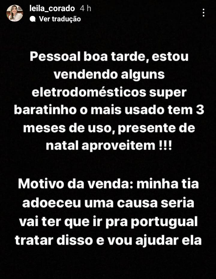 Dra. Leila estava viajando de Tauá para Fortaleza quando estranhou o recebimento de ligações e mensagens sobre os produtos anunciados no Story do seu perfil e percebeu que seu Instagram havia sido rackeado. Ela está na capital cearense se dirigindo à uma Delegacia de Polícia para registrar um Boletim de Ocorrência e pede que ninguém faça nenhuma transação financeira por meio dos produtos anunciados no seu perfil.