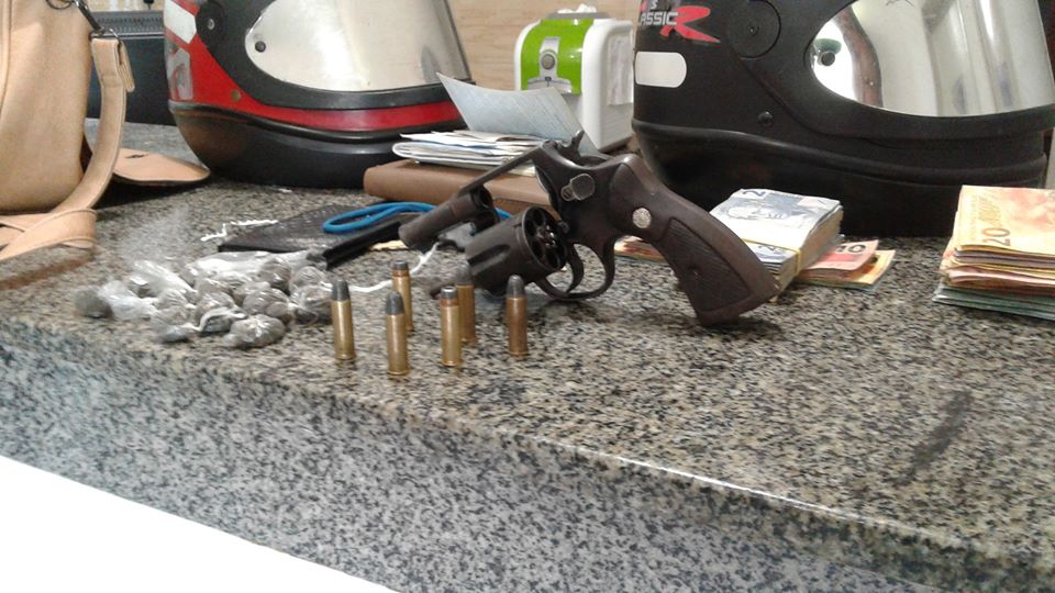 Na casa também foram apreendidas drogas e dinheiro da venda dos entorpecentes. Todo o material foi entregue na a Delegacia para ser restituídos aos proprietários.