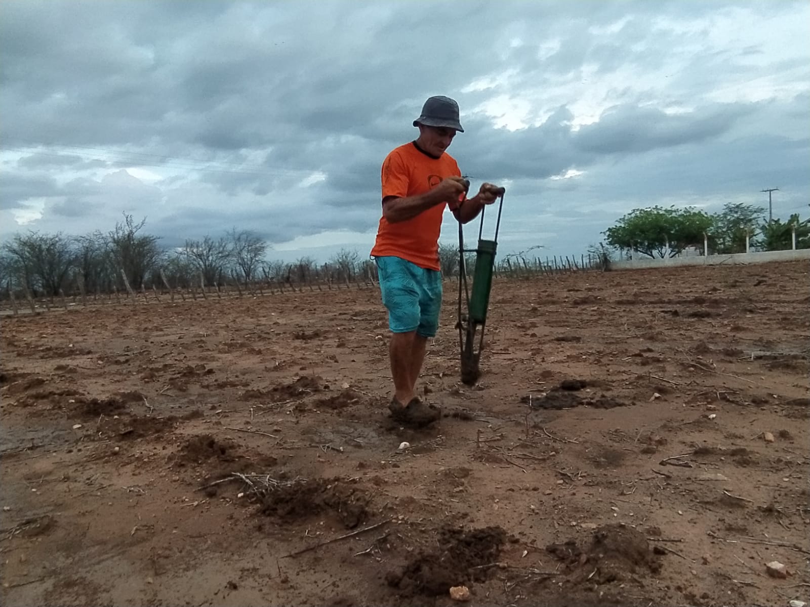 Após chuvas acima de 60mm nesses últimos dias, na localidade de Caiçara, distrito de Carrapateiras, uma das mais secas do município de Tauá, com terra cortada e bem molhada, começou hoje(30), o plantio de milho.