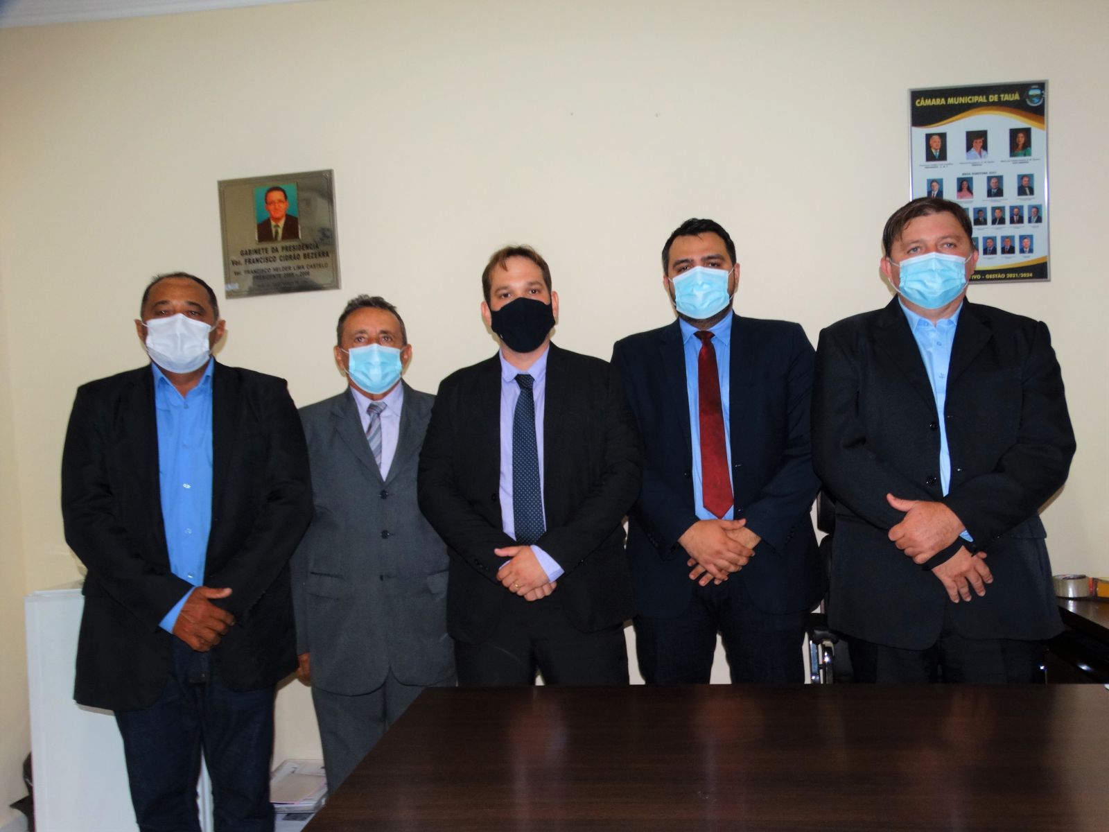 A nova Mesa Diretora da Câmara Municipal de Tauá foi empossada na tarde de hoje(03), no Gabinete da Presidência, em solenidade simples e protocolar, coordenada pelo então presidente no Exercício de 2021, vereador Helder Castelo.