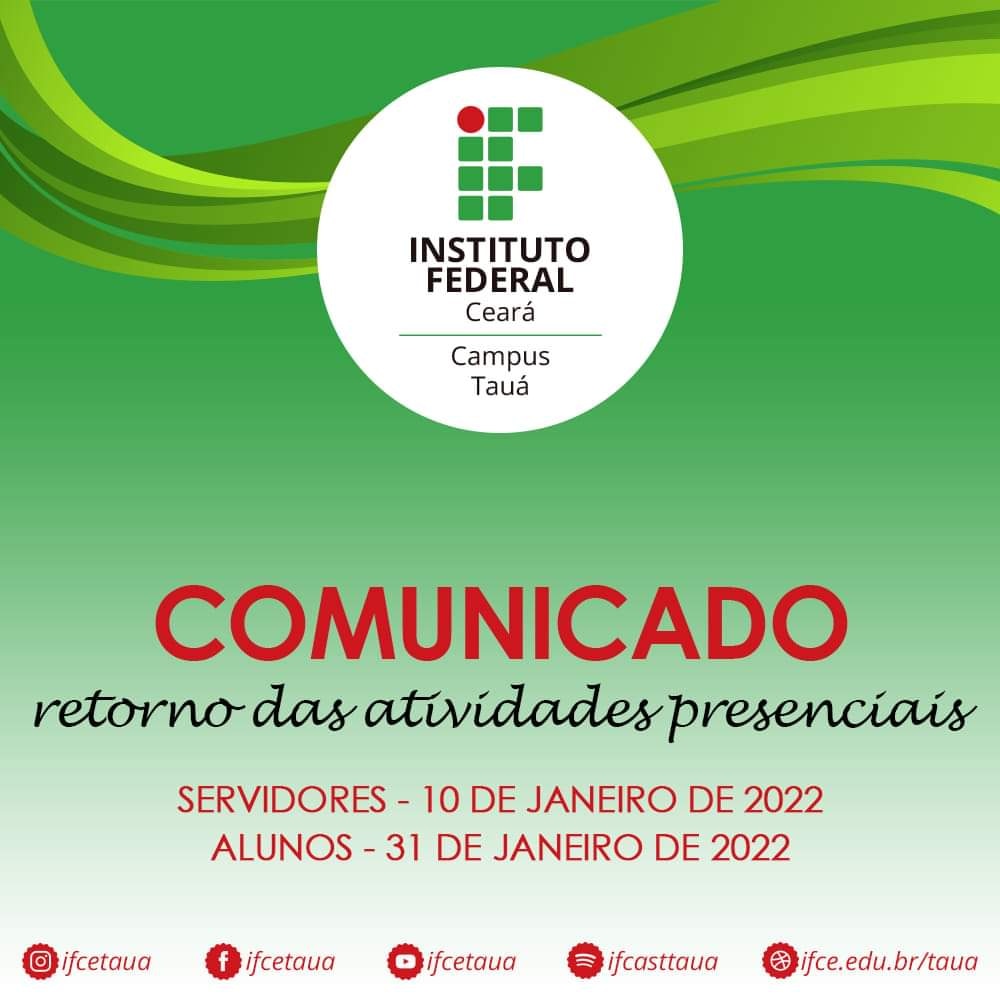 O campus do IFCE de Tauá retormará as atividades administrativas e acadêmicas nesta segunda-feira (10), mantendo as medidas sanitárias orientadas pelo Ministério da Saúde e pelo Protocolo de Biossegurança elaborado pela Comissão Interna de Saúde do Servidor Público (CISSP) do Instituto.