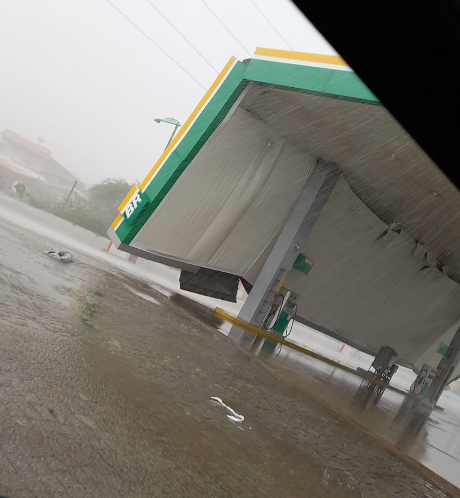 Parte da cobertura do posto de combustíveis Hawai na Av. Chermont Alves de Oliveira, foi danificada e cedeu.