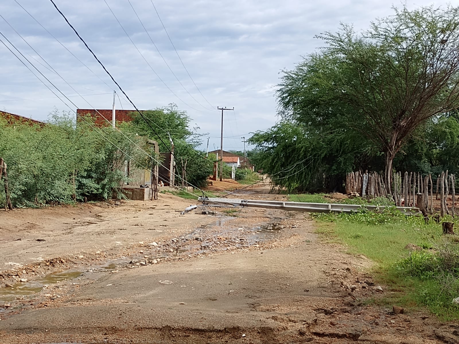 Nas Ruas, Francisco Adelino Sampaio e Maria do Socorro do Carmo Dias, no Bairro São Geraldo, houve queda e danos em postes, deixando moradores em energia elétrica.