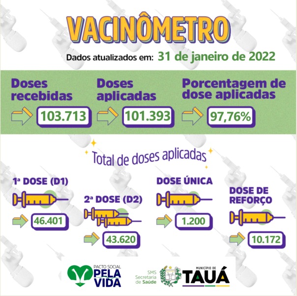 Até agora, Tauá recebeu 103.713 doses de vacinas e aplicou 101.393 doses(97,76%).