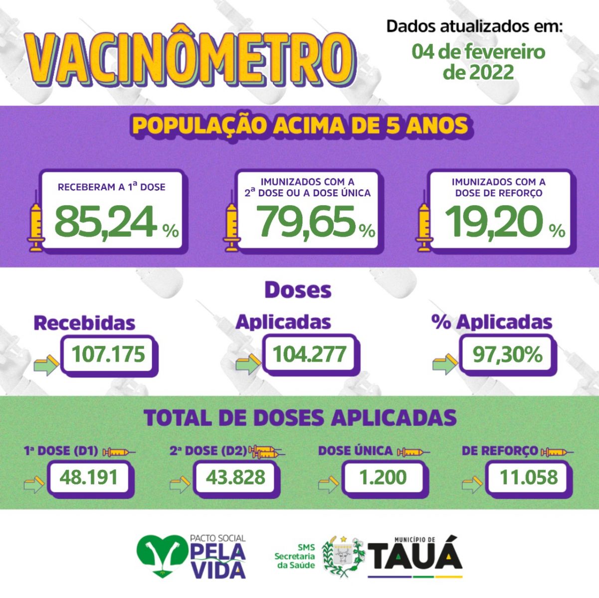 O município de Tauá aplicou mais de 104.277 doses de vacinas contra a Covid-19. Os números do Vacinômetro foram divulgados pela Secretaria de Saúde nesta sexta-feira (04).