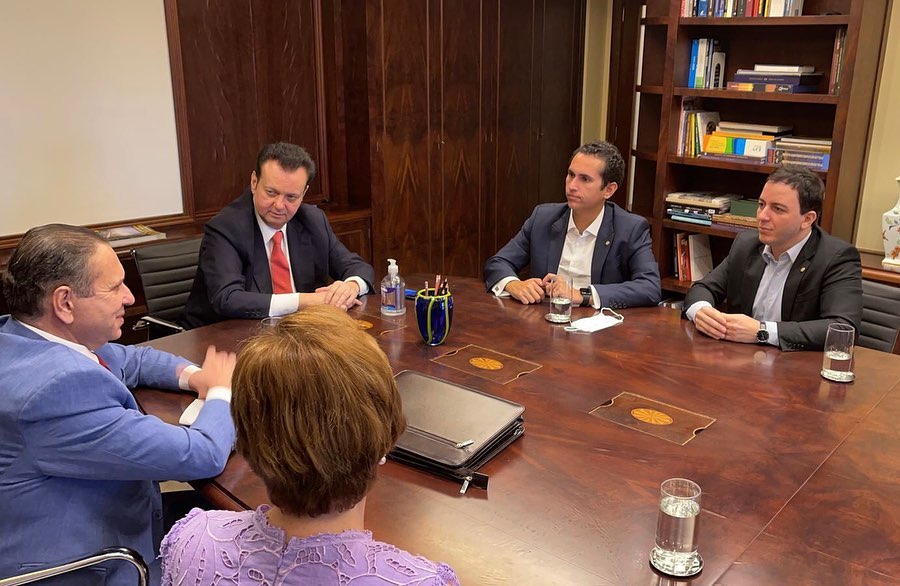 O Dep. Federal Domingos Neto e a Prefeita de Tauá, Patrícia Aguiar também participaram do encontro com Gilberto Kassab e Domingos Filho.