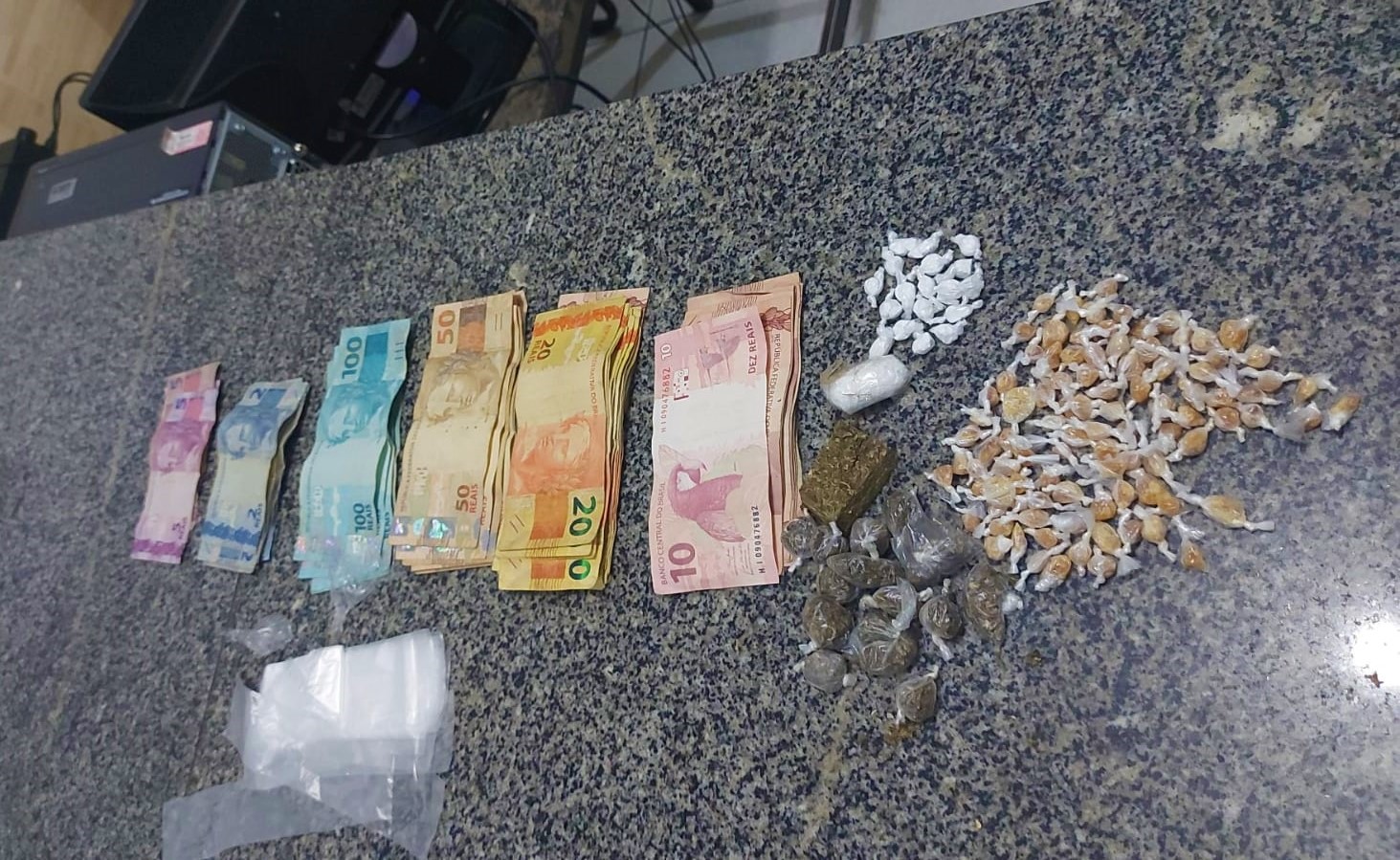 Segundo o Tenente Ricardo, que comandou a diligência, a Polícia foi informada sobre uma movimentação estranho no local, típica de comercialização de entorpecentes. Quando a composição chegou na residência recebeu autorização para realizar uma revista e foram encontrados, drogas e dinheiro.