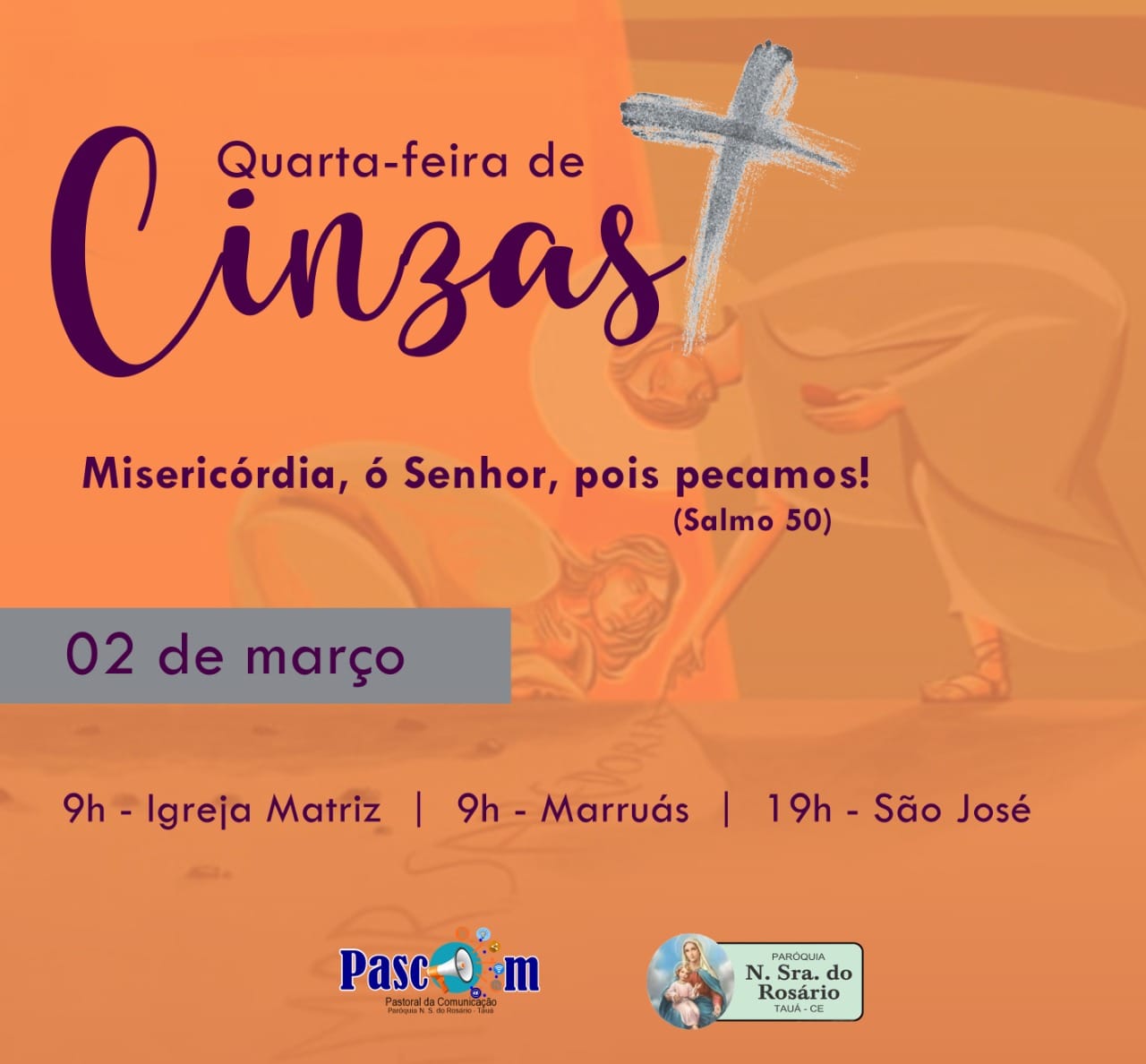 A Paróquia de Nossa Senhora do Rosário divulga a Programação de Missas a serem celebradas em Tauá nesta Quarta-feira de Cinzas, dia 02 de março.