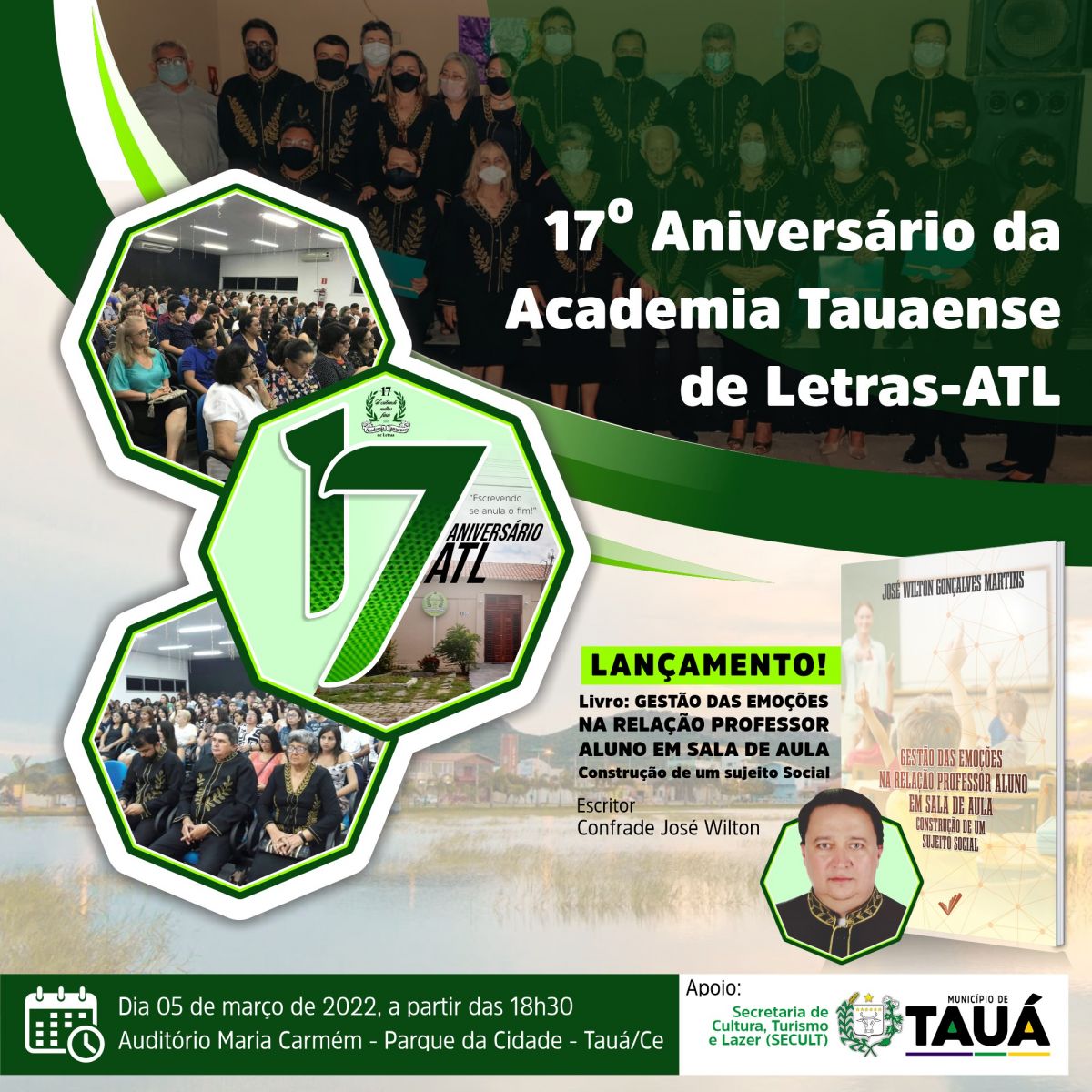 A Academia Tauaense de Letras comemora neste mês de março 17 anos de sua fundação. A entidade foi fundada no dia 05 de março de 2005 e imortalizou na época 14 Cadeiras com os seus Patronos e respectivos Membros Fundadores.
