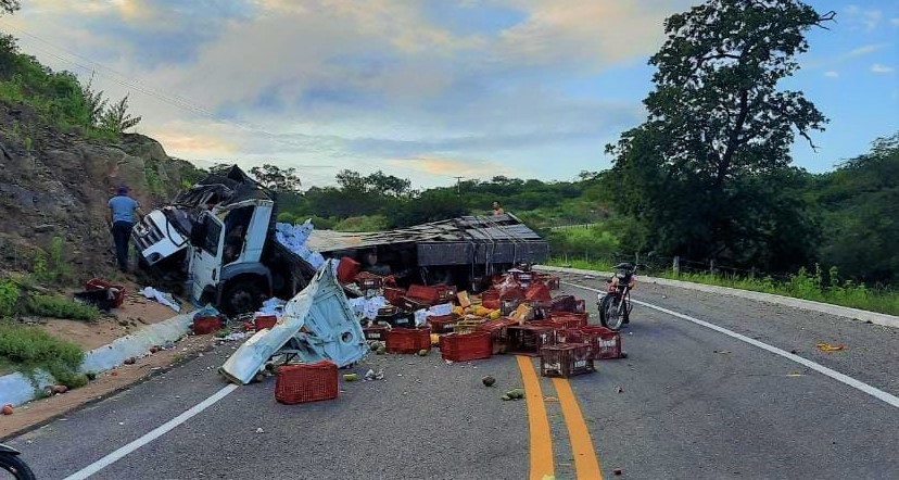 O veículo transportava uma carrada de frutas do Estado de Pernambuco com destino à cidade de Tianguá e no acidente, a carga ficou espalhada pela pista.