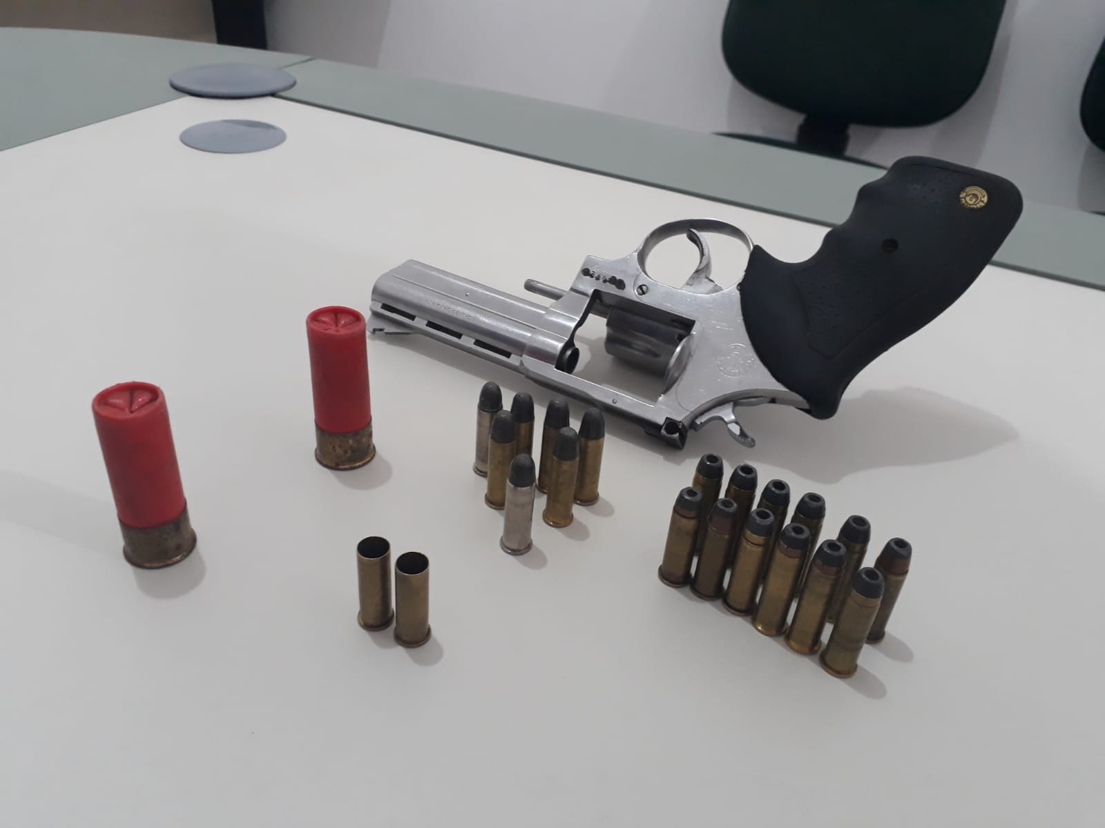 Os policiais se dirigiram à 14ª DP em Tauá, onde apresentaram um revólver calibre 38 Especial, 19 munições calibre 38 intactas, 2 munições calibre 38 deflagradas e 2 munições calibre 12, que estavam em poder de Antonio Jaime, para os procedimentos legais.
