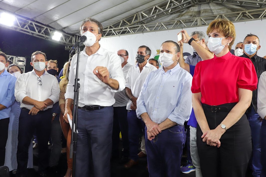 O governador Camilo Santana, ao lado da prefeita Patrícia Aguiar e do ex-vice-governador Domingos Filho, anunciou na noite de ontem (22), um pacote de obras durante visita ao município de Tauá.