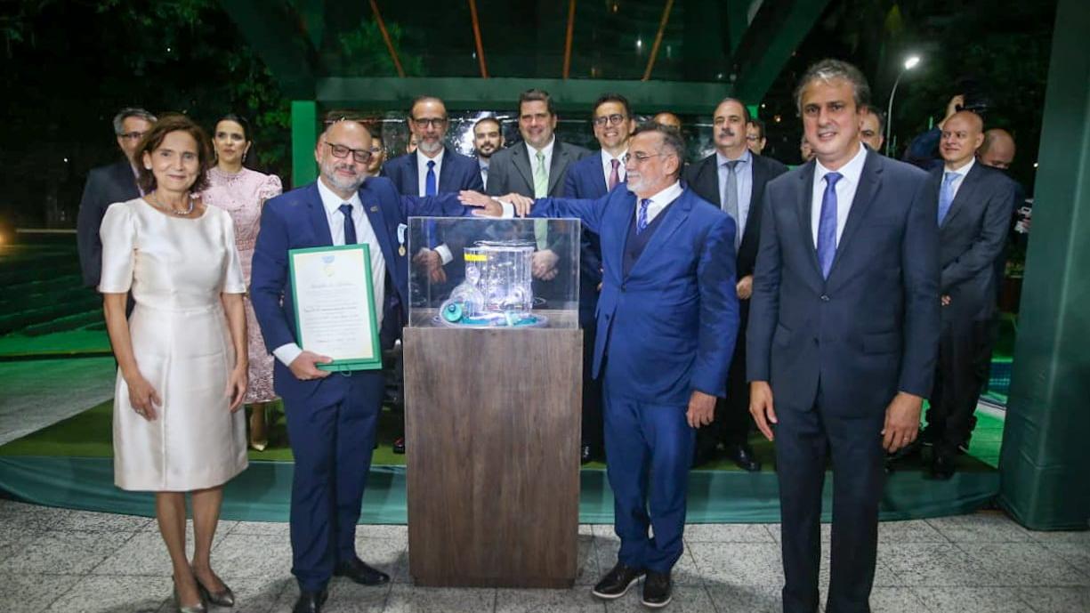A comenda foi entregue pelo governador Camilo Santana (PT). “Nós sabemos o que representou o capacete na pandemia. Não só para milhares de cearenses, mas, também, para os brasileiros. O capacete reduziu em 60% a necessidade de intubação de pacientes com Covid-19. E foi uma parceria entre iniciativa privada, academia e poder público. Homenagem mais do que justa”, celebrou o governador.