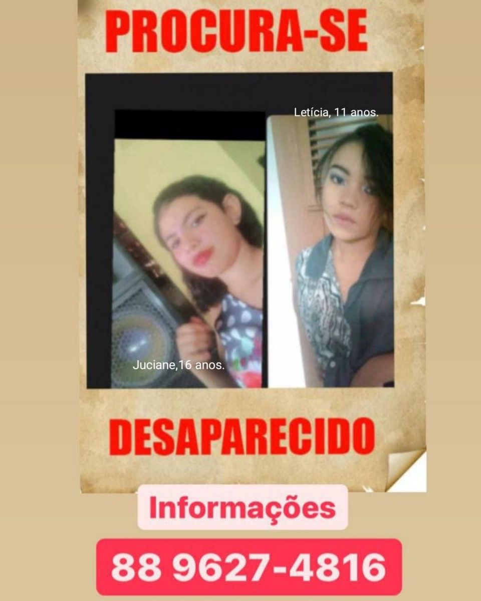 Familiares estão bastante preocupados com o sumiço das meninas e divulgaram imagens nas redes sociais e números de telefones para quem souber alguma informação: (88) 9.9626.4816 ou (88) 9.9606.0812