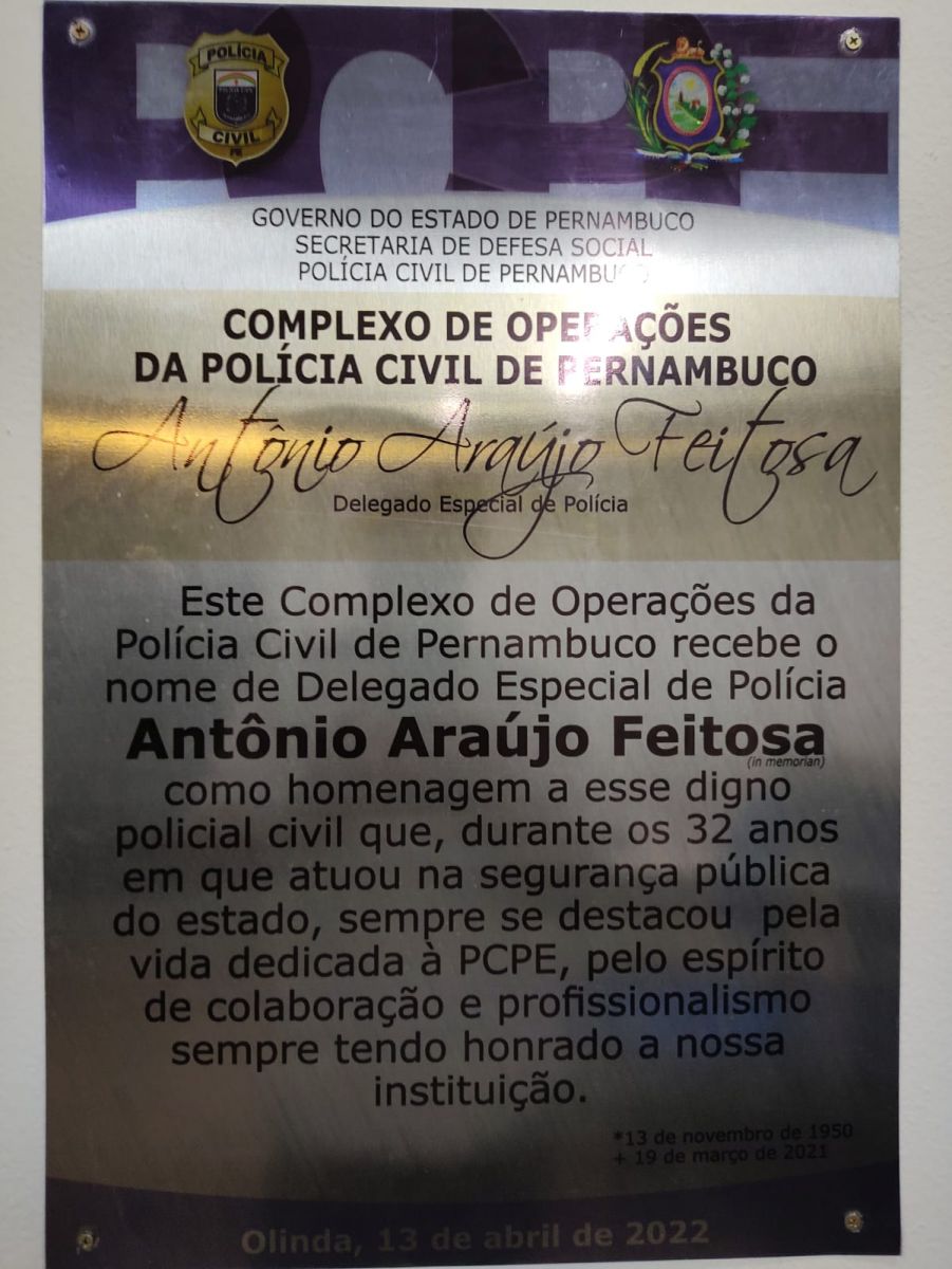 O Complexo de Operações da Polícia Civil de Pernambuco recebeu o nome do Delegado Especial Antônio Araújo Feitosa. Nascido em 13 de novembro de 1950, no município de Tauá, no Ceará, ele ingressou na Polícia Civil de Pernambuco em 28 de julho de 1982, e estava aposentado quando faleceu, em 19 de março de 2021. Ele é filho do ex-prefeito de Tauá, Gerardo Feitosa