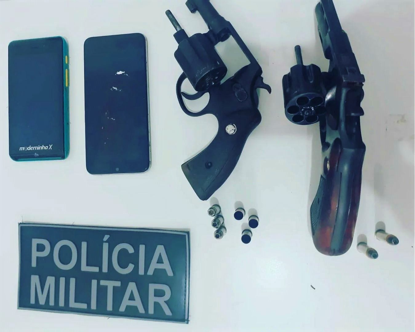 Foram recolhidos e entregues na Delegacia Regional de Polícia Civil de Tauá, dois revólveres calibre 38, a moto que tem queixa de roubo, dois capacetes e outros objetos.