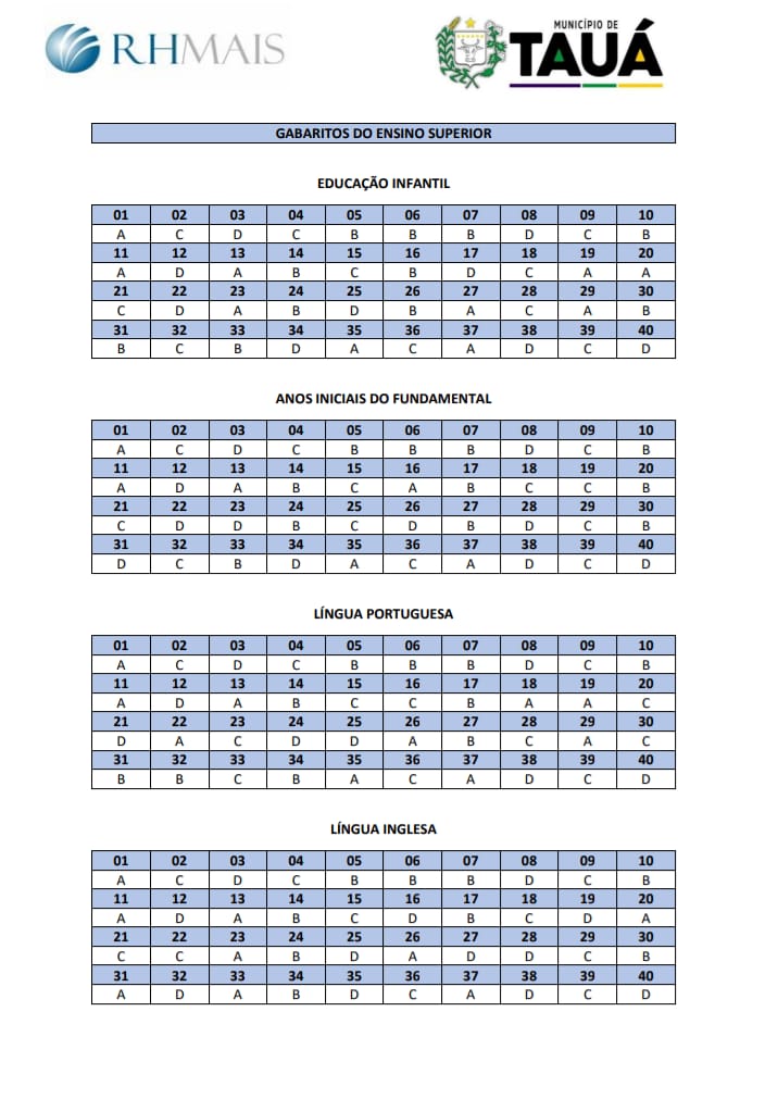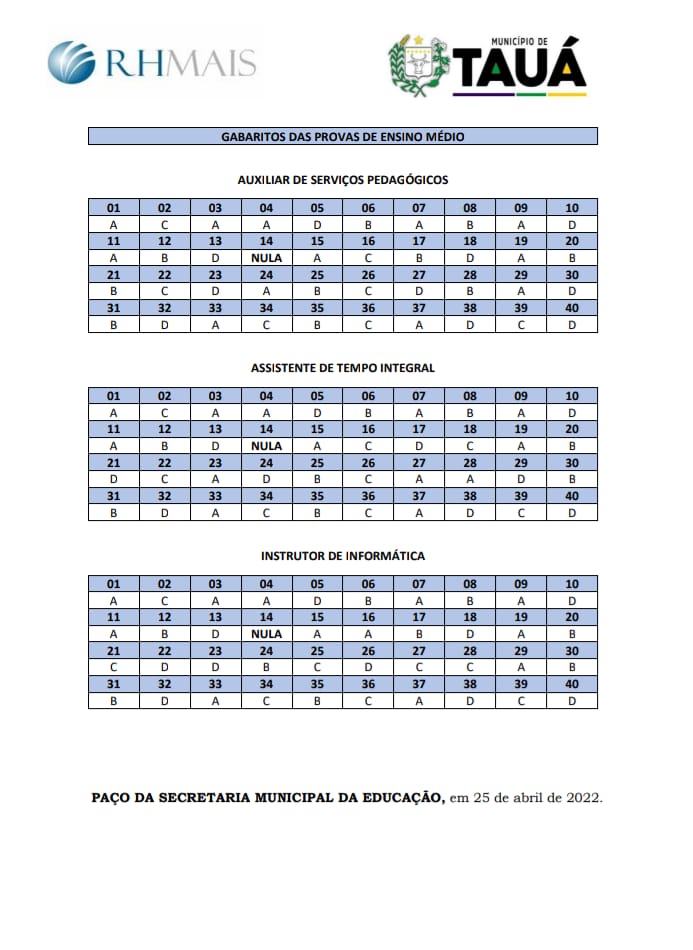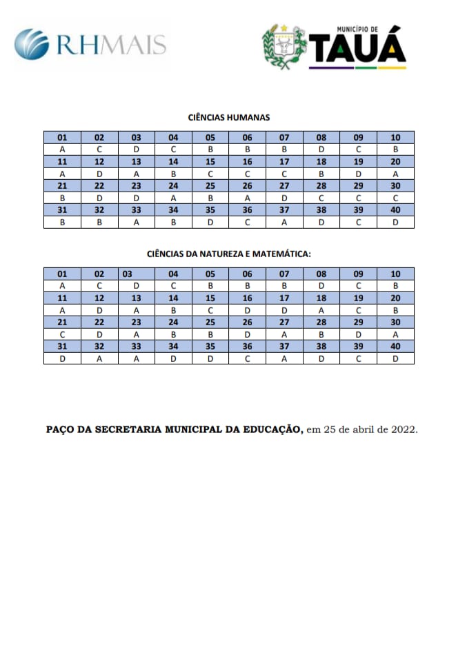 Foram divulgados na tarde de hoje (25), os gabaritos preliminares do processo seletivo da Secretaria de Educação de Tauá. As provas objetivas foram aplicadas na manhã de ontem (24).