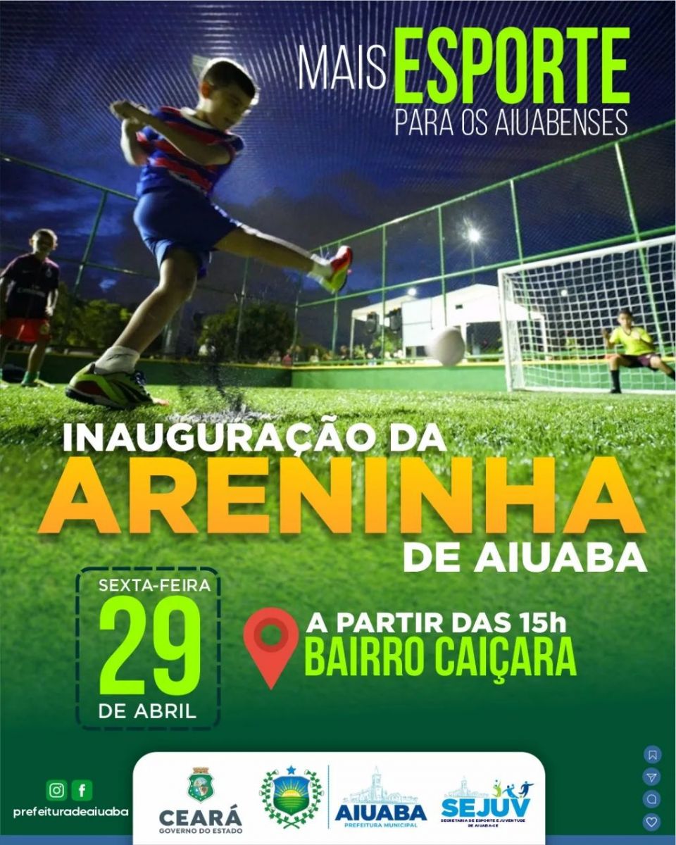 O Prefeito de Aiuaba, Ramilson Moraes confirmou para a tarde desta sexta-feira (29), a inauguração de uma Areninha no Bairro Caiçara. A obra é uma parceria entre o Governo do Ceará e a Prefeitura.