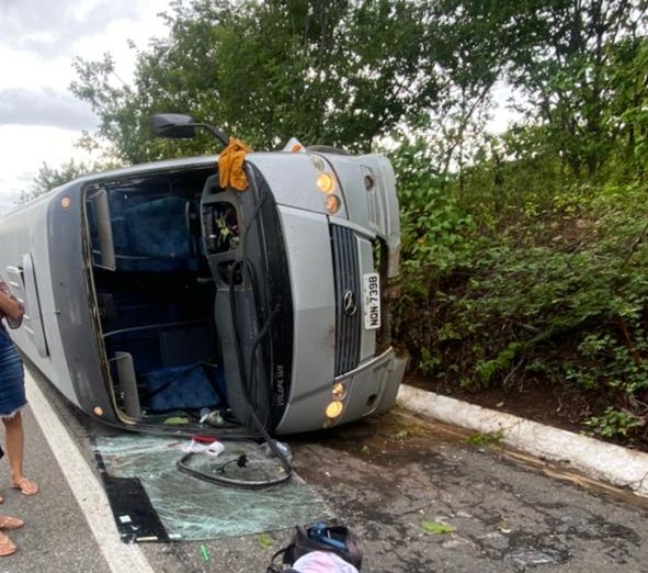 Um ônibus pertencente a Crede 15, sediada em Tauá, tombou na manhã de hoje(21), na BR-020, altura da localidade de Pau Preto, no município de Parambu, quando transportava estudantes da Escola Profissional Monsenhor Odorico de Andrade, de Tauá, que iam participar da Fase Regional dos Jogos Escolares do Estado do Ceará.