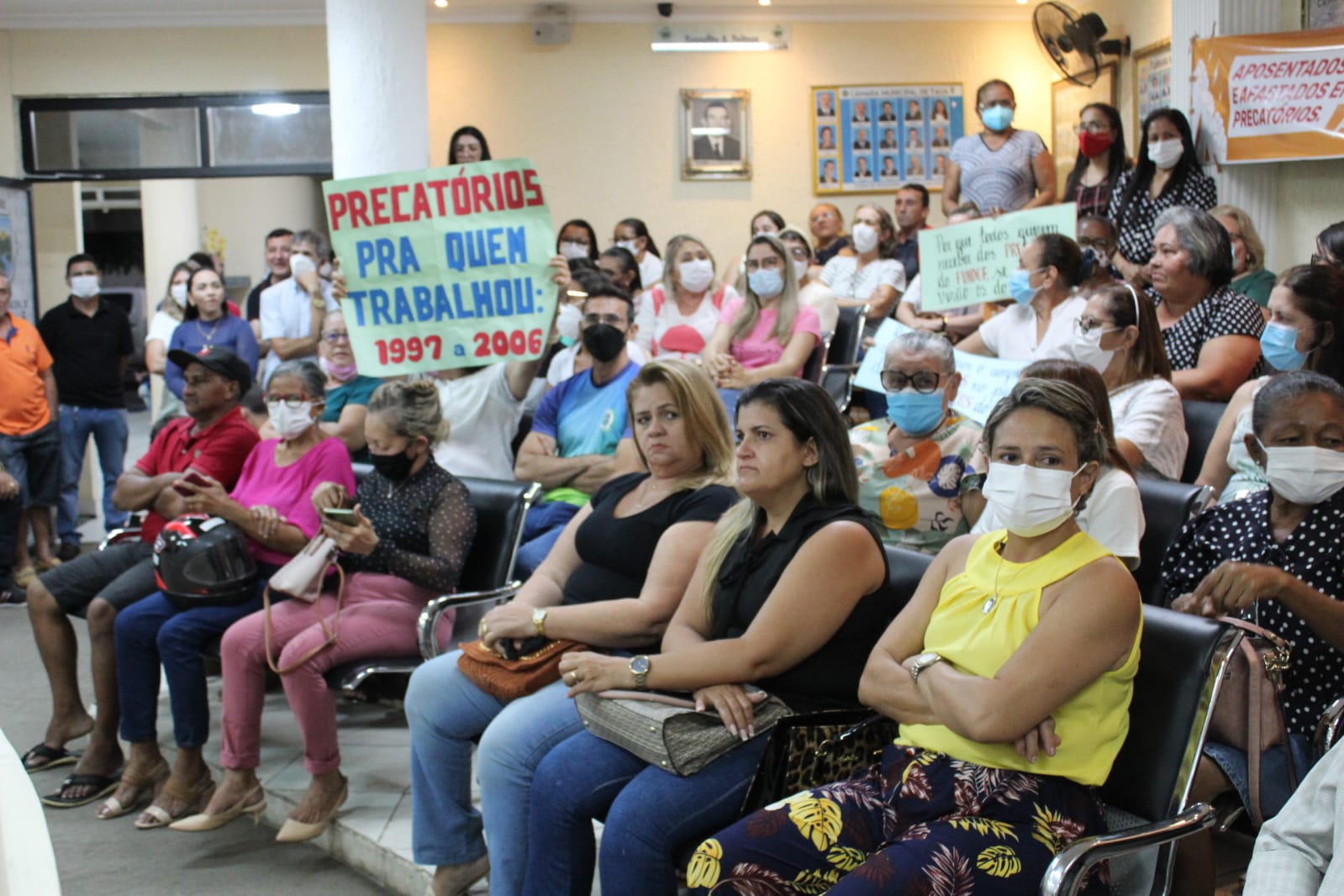 Portando faixas e cartazes, profissionais do magistério lotaram as galerias da Câmara