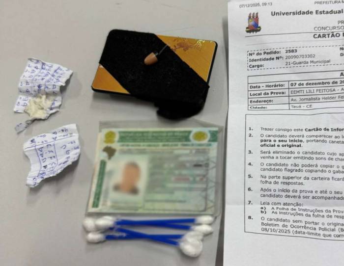 A Polícia Civil do Estado do Ceará (PCCE) prendeu em flagrante, nesse domingo (7), seis pessoas suspeitas de tentar fraudar um concur