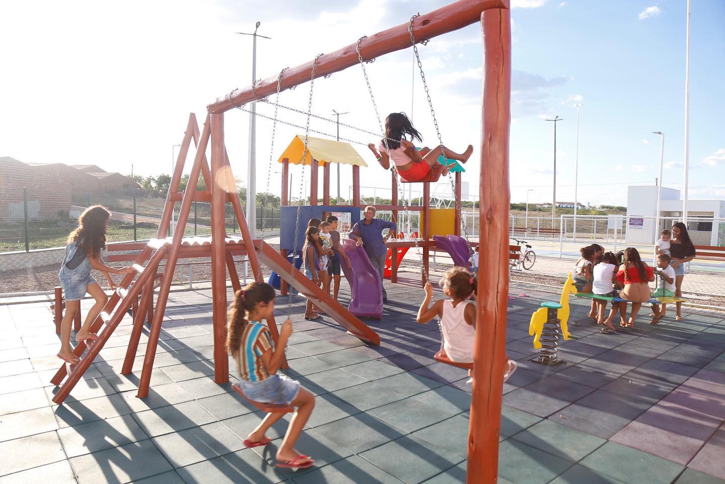 As famílias de Boa Viagem, no Sertão de Canindé, agora contam com um espaço adequado para o lazer e o fortalecimento do vínculo comunitário. É que no final da tarde desta quarta-feira (7), a governadora Izolda Cela entregou a 31ª Praça Mais Infância com academia ao ar livre, no bairro Recreio. Estiveram presentes o secretário-executivo da Proteção Social, da Secretaria da Proteção Social, Justiça, Cidadania, Mulheres e Direitos Humanos (SPS), Paulo Rogério Guedes; o prefeito da cidade, José Carneiro Dantas Filho; e demais autoridades.
