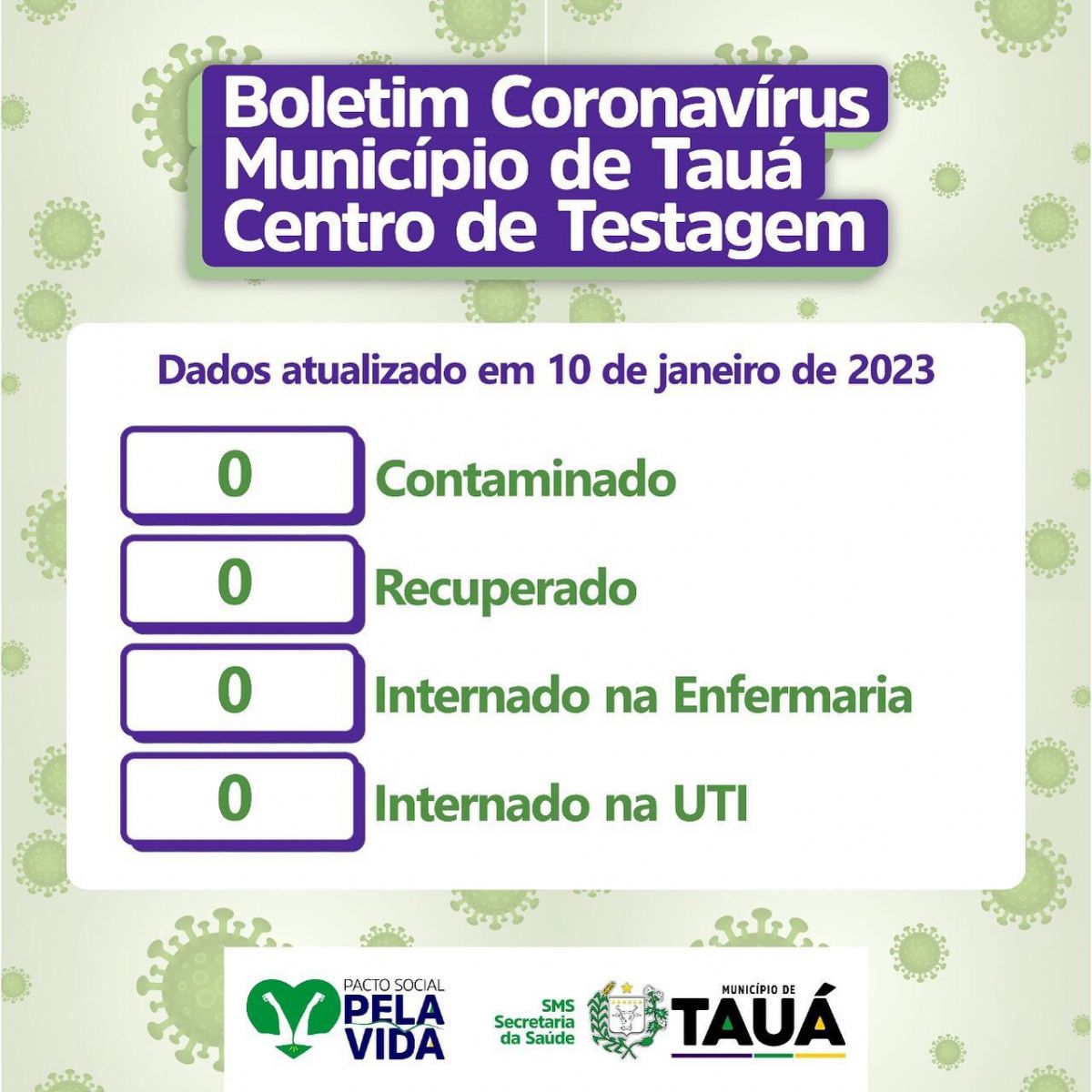 O município de Tauá não tem pacientes infectados pela Covid-19. A informação é da Secretaria de Saúde, por meio de Boletim Epidemiológico divulgado no final da manhã de hoje (10).