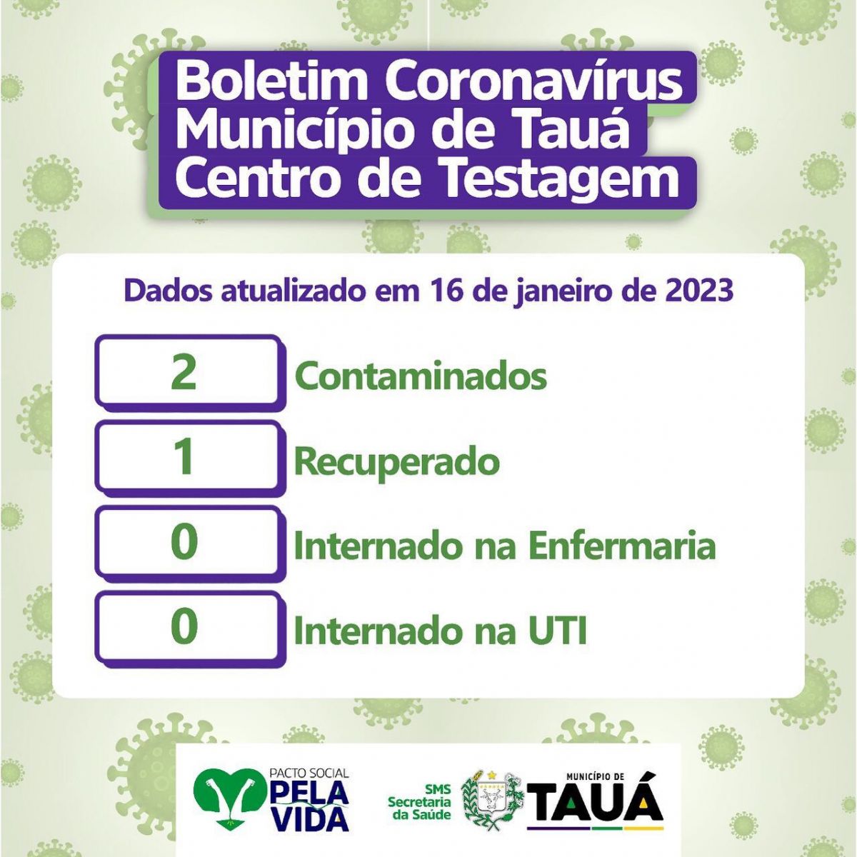 No último dia 10 de janeiro, a Secretaria de Saúde havia anunciado que o município de Tauá não tinha nenhum caso confirmado de covid.