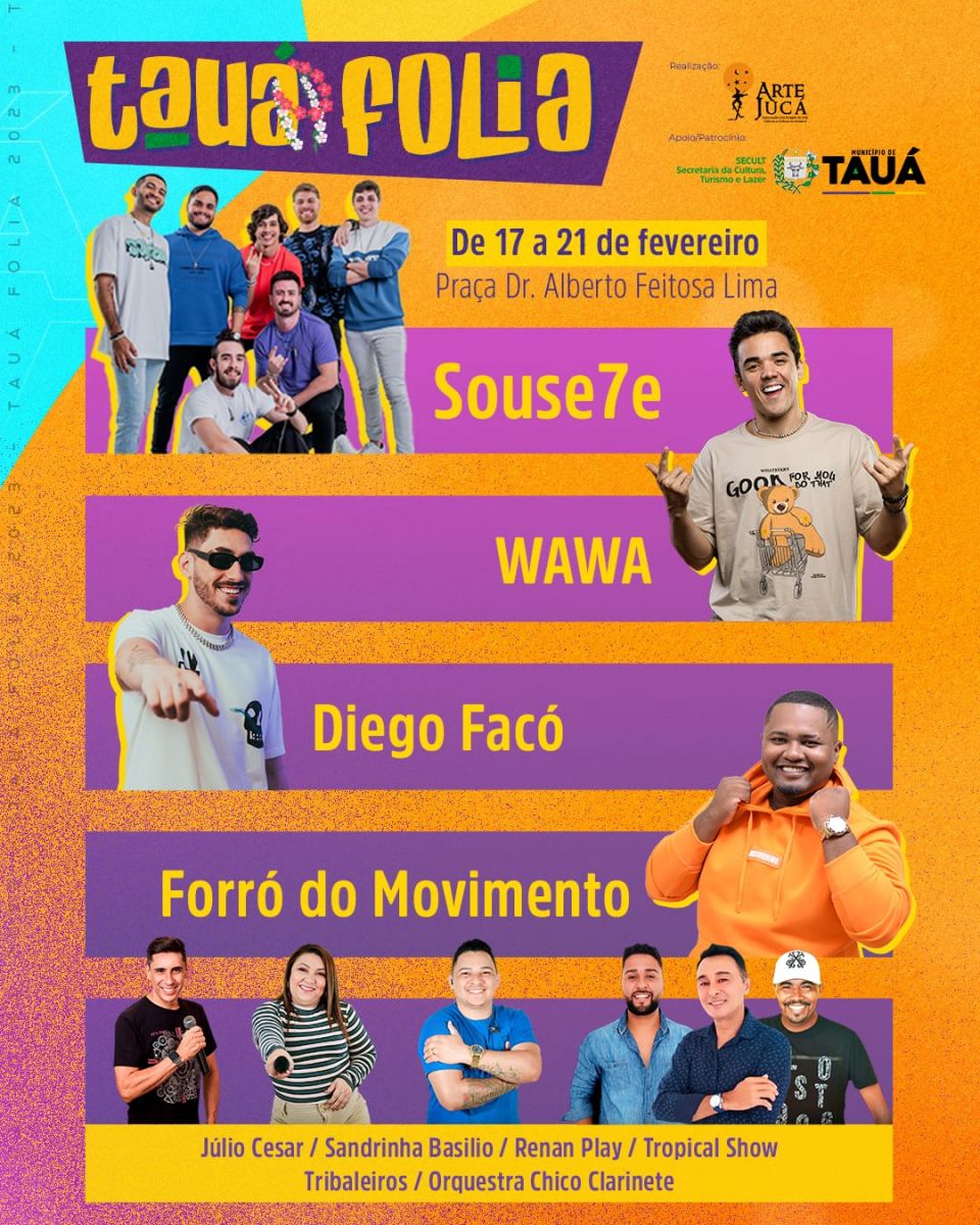 A Prefeitura de Tauá divulgou no início da tarde de hoje (03), a Programação Oficial do Tauá Folia 2023, resgantando as grandes festas populares do Município.