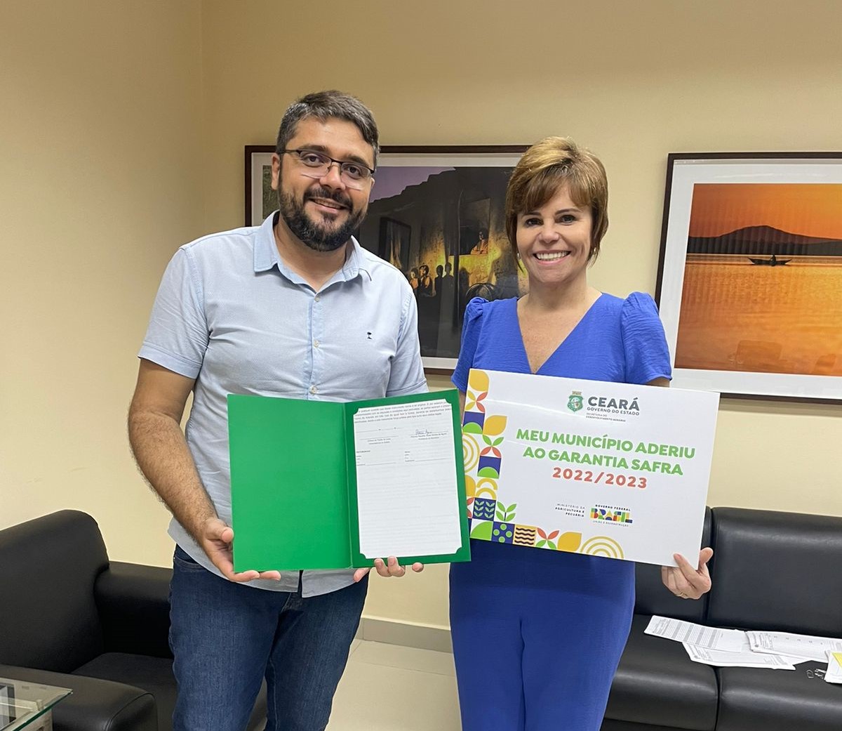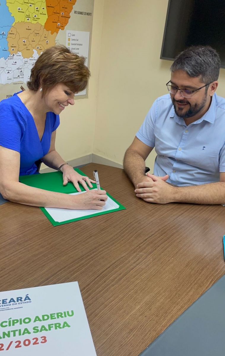 A Prefeita de Tauá, Patrícia Aguiar assinou ontem (15), na sede da Secretaria de Desenvolvimento Agrário do Estado do Ceará, em Fortaleza, o Termo de Adesão ao Garantia Safra 2022-2023, ao ser recebida pelo assessor Marcel Bezerra.