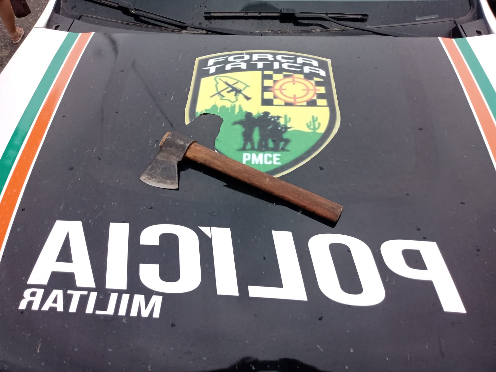 Policiais da equipe IRSO da Força Tática da 1ª CIA do 13º BPM de Tauá, prenderam um homem no final da manhã de hoje (20), na localidade de Massapê, no distrito de Santa Teresa, após lesionar uma cadela com um golpe de machado.