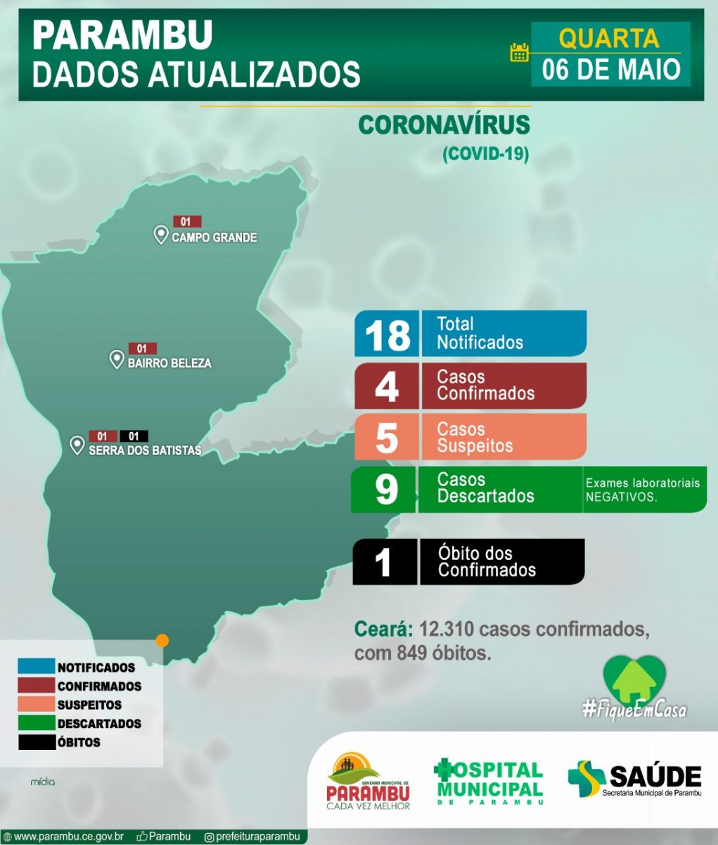 Já a Sede Distrital aumentou mais um caso nas últimas 24h passando para 10 pessoas infectadas. Os demais distritos com casos confirmados são, Santa Teresa, Trici, Marrecas, Carrapateiras e Inhamuns. Marruás e Barra Nova ainda tem casos confirmados.