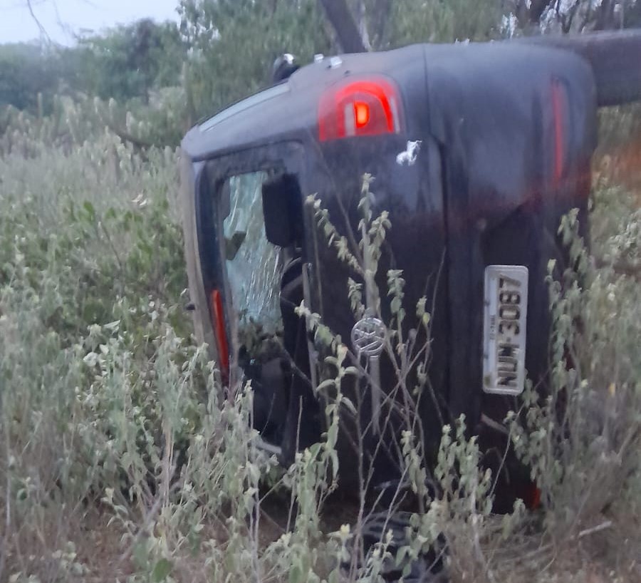 Segundo as primeiras informações, um Volkswagem Fox, placas NUM 3087-Tauá/CE, saiu da rodovia e tombou.
