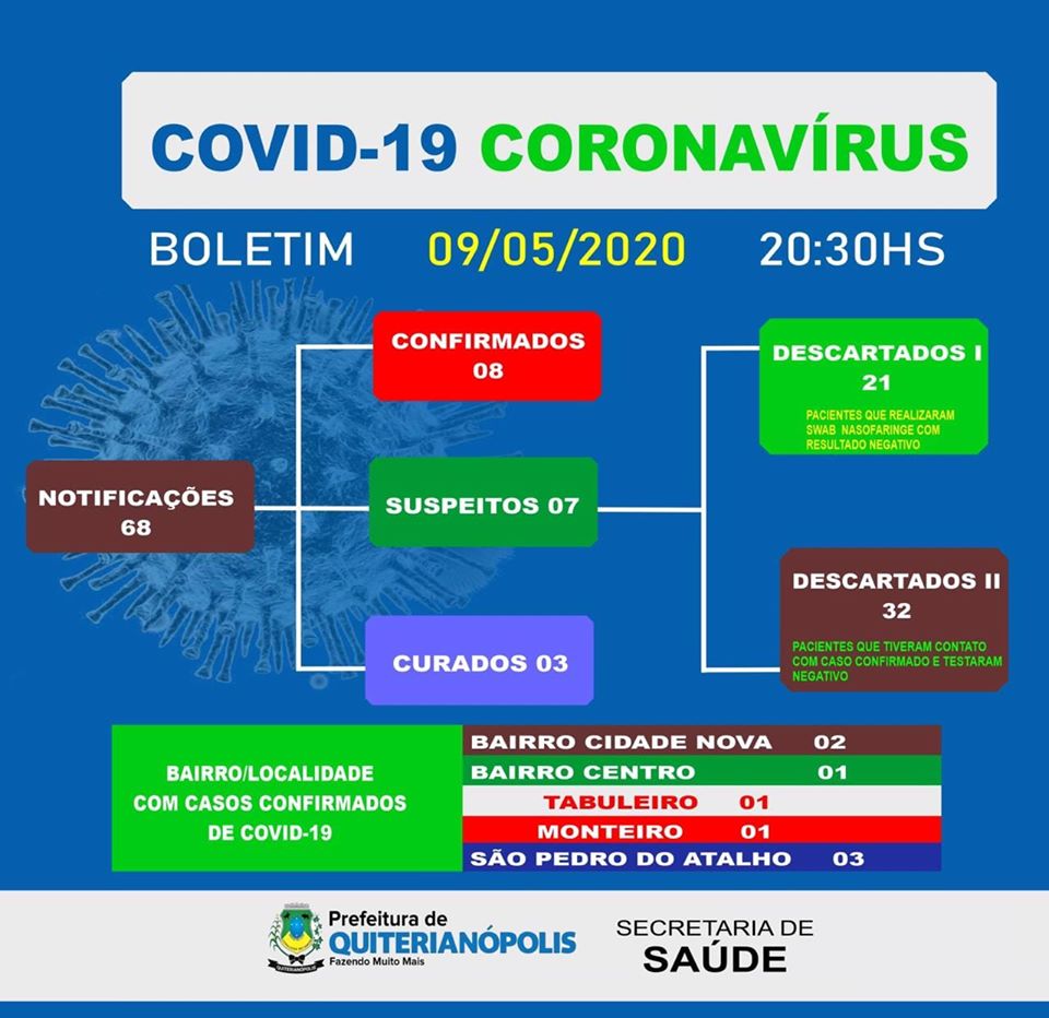 O boletim epidemiológico divulgado ontem(09) pela Prefeitura de Quiterianópolis, informou um aumento do número de casos de 6 para 8.