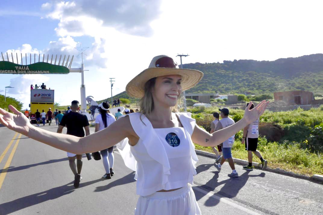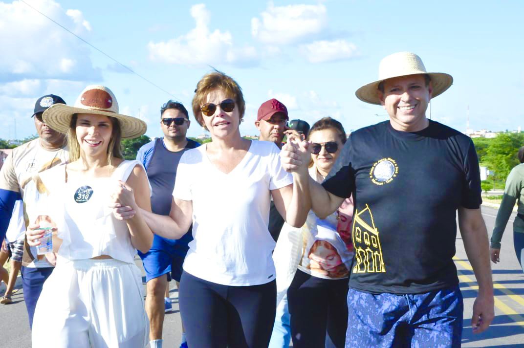 A deputada estadual Gabriella Aguiar, ao lado da prefeita de Tauá, Patrícia Aguiar, e do ex-vice-governador Domingos Filho, participou nesta sexta-feira (21) da Caminhada da Fé - trajeto que vai da sede do município de Tauá até a Vila de Marrecas.