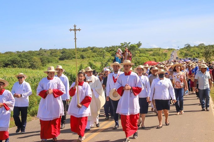 Por volta das 8h da manhã, os devotos saíram em procissão com as imagens da Sagrada Família, num percurso entre a Gruta e a Igreja local, onde os Padres, Luan e Reginaldo, celebraram a missa.