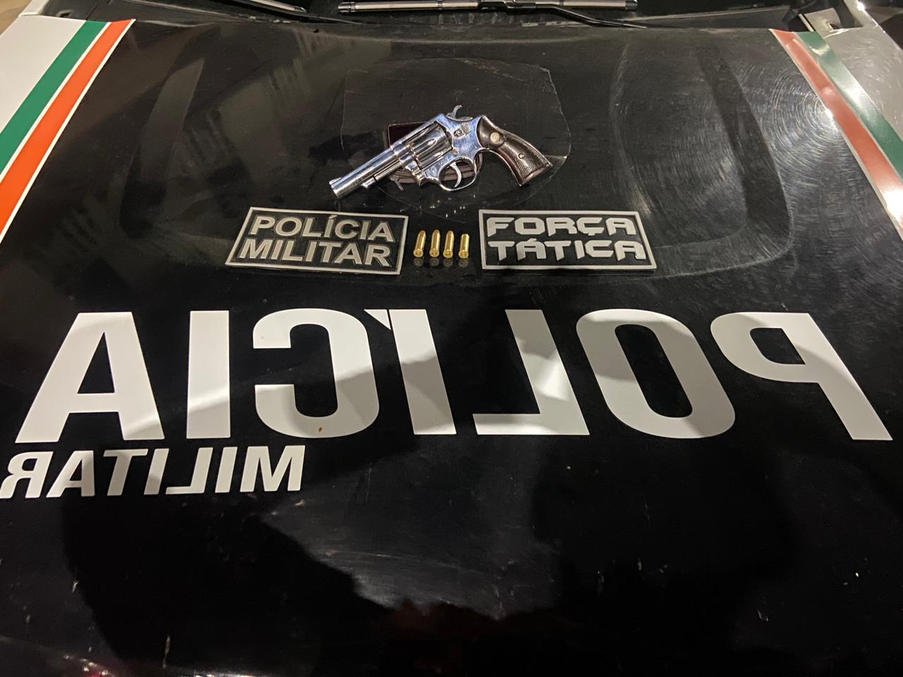 As equipes realizaram diligências e suspeito foi abordado no centro conduzindo uma motocicleta Titan 150, de cor vermelha. Indagado sobre a arma, ele afirmou que o revólver estava em sua residência e que apenas guardava a pedido de um conhecido.