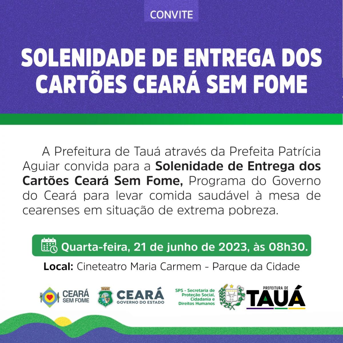 Acontecerá nesta quarta-feira (21), a entrega dos cartões do Programa Ceará Sem Fome, do Governo do Ceará, aos beneficiários do município de Tauá.