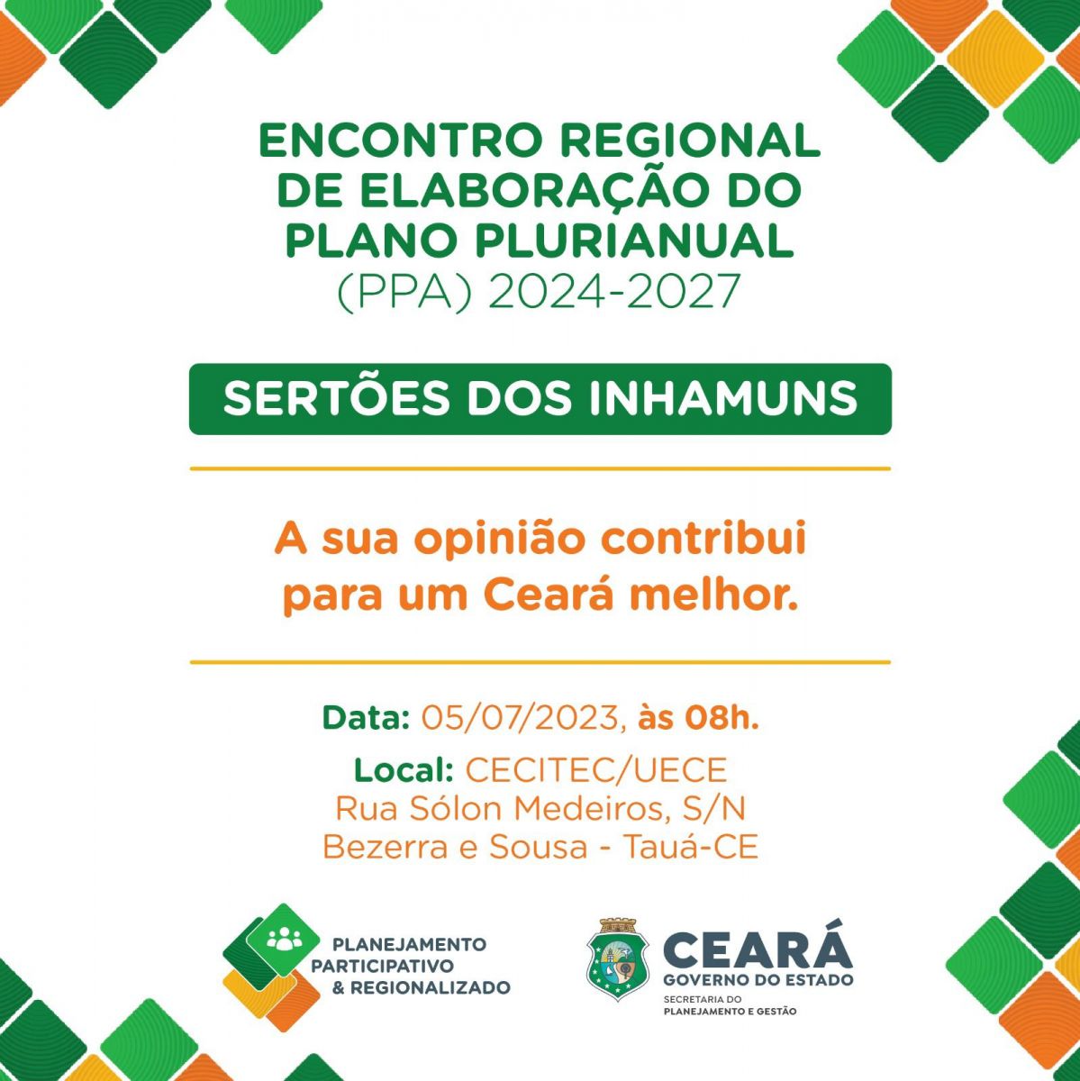 O Governo do Ceará realiza o sétimo encontro regional do Plano Plurianual (PPA) Participativo 2024-2027, no Sertão dos Inhamuns.