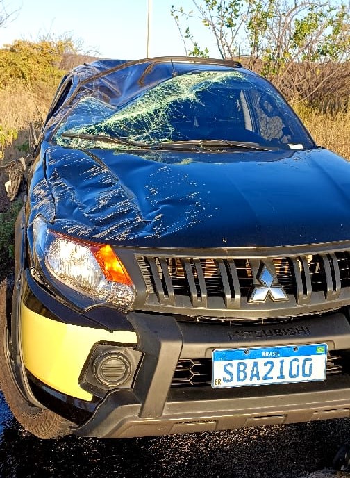 Uma camionete Mitsubishi L200 Triton, cor preta, com placas SBA 2I00, fazia o trajeto Fortaleza/Tauá, capotou quando o motorista tentou desviar buracos na pista perdeu o controle do veículo vindo a capotar.