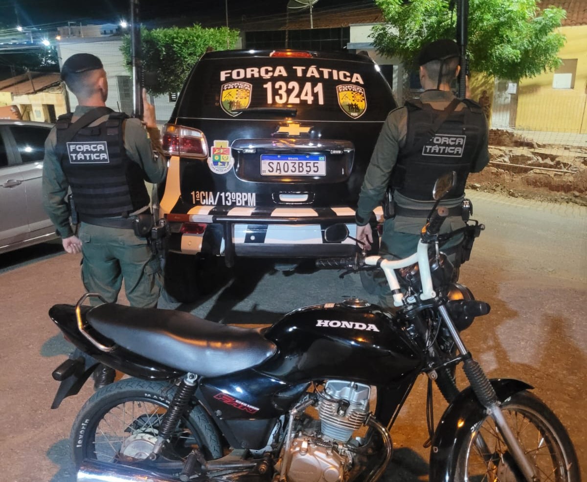 Uma moto com queixa de roubo foi apreendida por policiais da Força Tática do 13º BPM de Tauá, por volta das 9h de hoje (05), na cidade de Catarina.