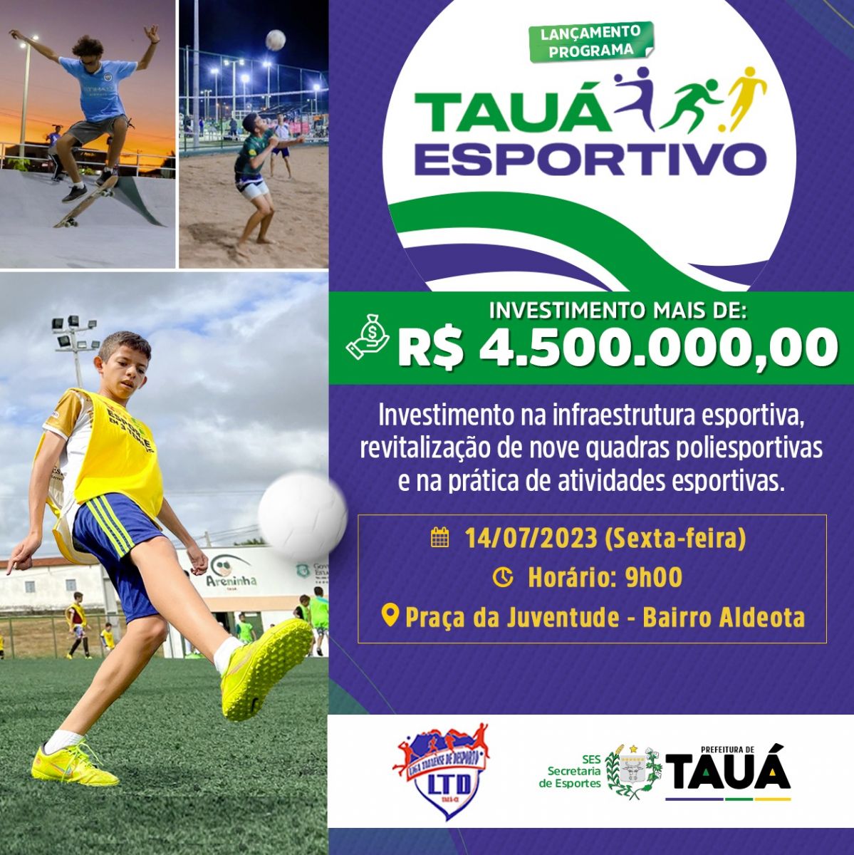 A Prefeita Patrícia Aguiar autoriza nesta quinta-feira (14), obras de recuperação em 9 quadras poliesportivas na cidade e interior do município de Tauá. Nessa primeira etapa, serão investidos R$ 3.354.915,89, e repassados mais R$ 1.405.408,00, para promover a prática esportiva.