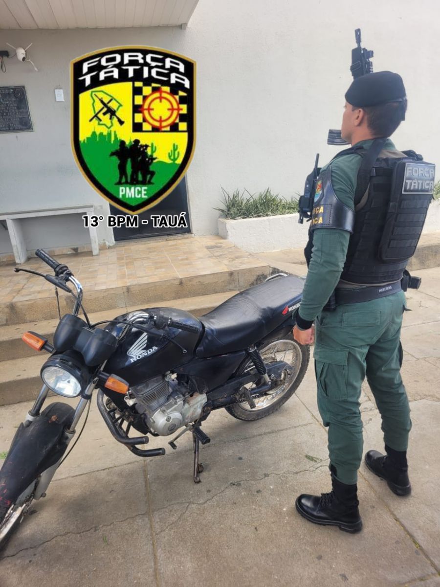 Uma moto adulterada oriunda de roubo foi apreendida por volta de 10h da manhã de hoje (21), na cidade de Aiuaba, por Policiais da Força Tática de Tauá.