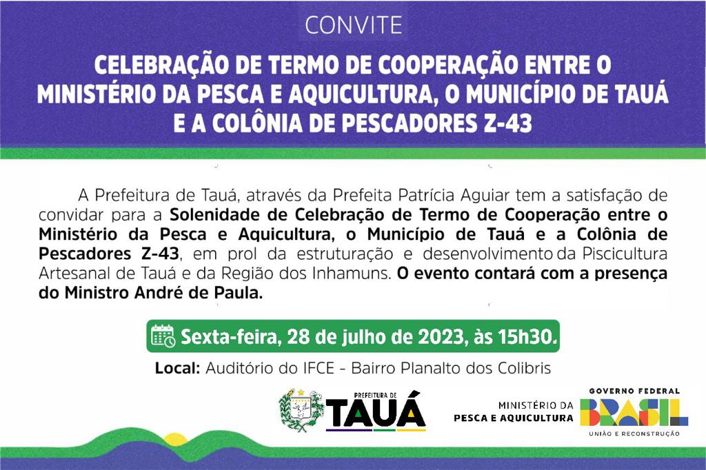 Na ocasião, o Ministro, a Prefeita Patrícia Aguiar e Colônia de Pescadores Z-43, assinarão o Termo de Cooperação Técnica com o objetivo de promover a estruturação e desenvolvimento da psicultura artesanal e da Região dos Inhamuns.